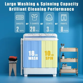 Portable Washing Machine, 28lbs Twin Tub Washer Drain Pump, Semi-automatic 18lbs
