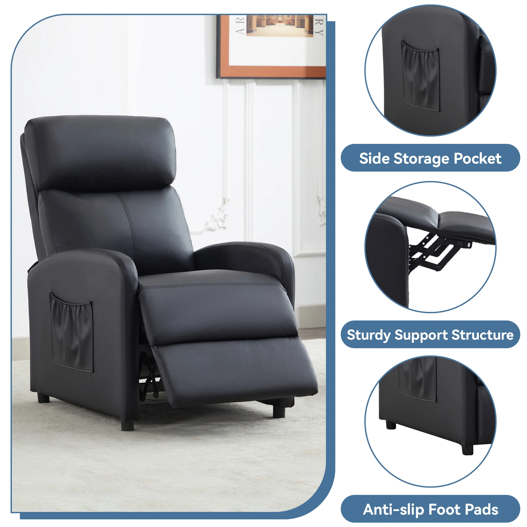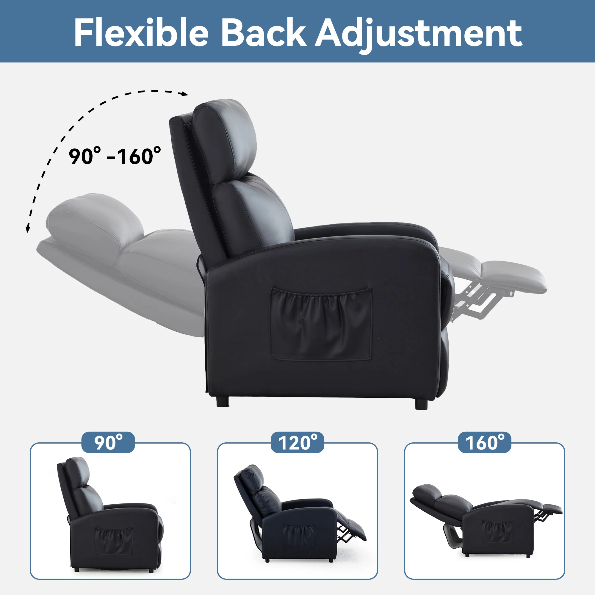 Large size comfortable recliner Seated size: 106*81*68 CM (H*D*W).