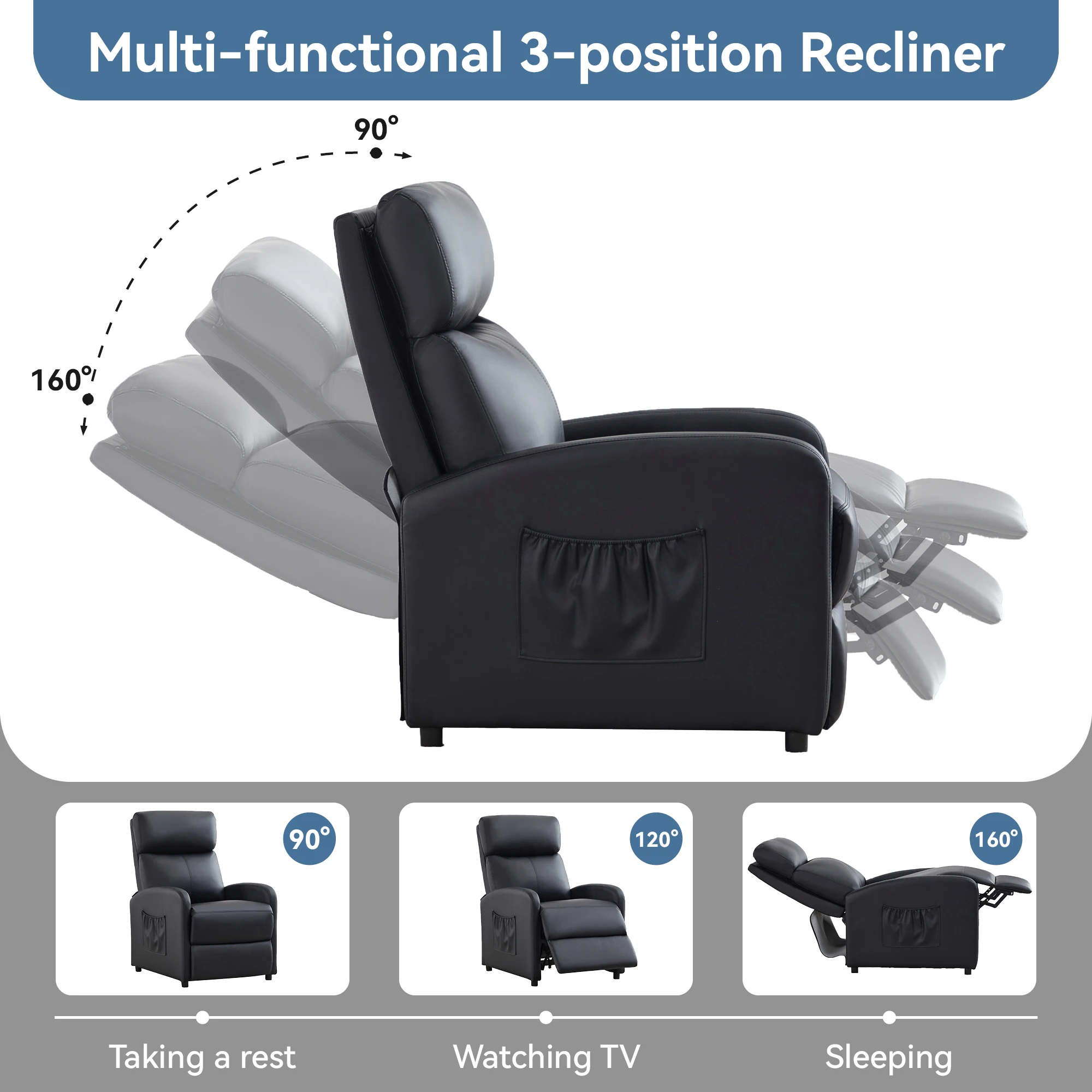 ❤️ Multi-functional 3-position Recliner: