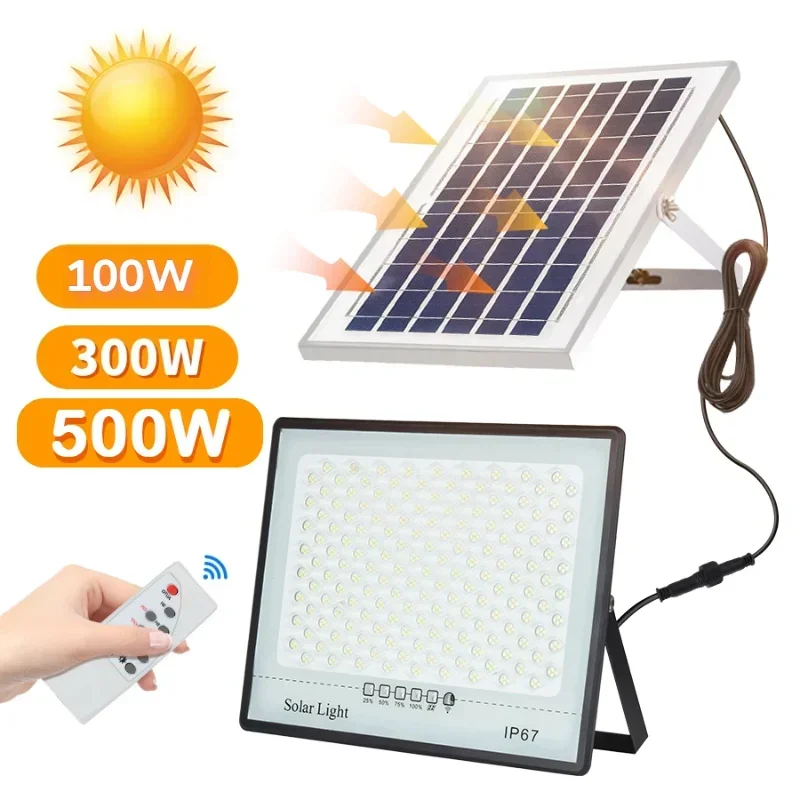 100/300/500W Solar Lights Outdoor IP67 Waterproof RC Powerful External Sunlight Garage Wall Lamp Garden Path Decor Light